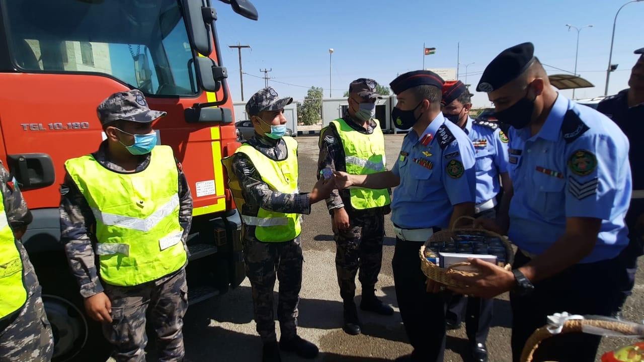 أحداث اليوم - شاركت مديرية الأمن العام المواطنين فرحة عيد الأضحى المبارك في مختلف محافظات المملكة حيث قدمت لهم الحلوى وبطاقات المعايدة والورود في الأماكن العامة وبالقرب من المساجد التي أدّوا فيها الصلاة.