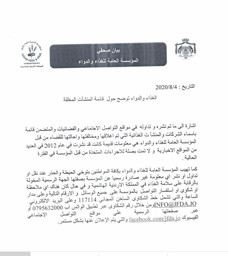وقالت المؤسسة في بيان لها، إن اسماء المنشأت التي انتشرت قديمة وكانت لمؤسسات اغلقت عام 2012، ولا لها اي علاقة بالاجراءات التي اتخذت خلال الفترة الحالية.