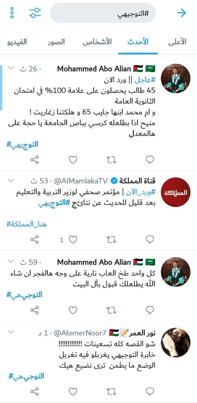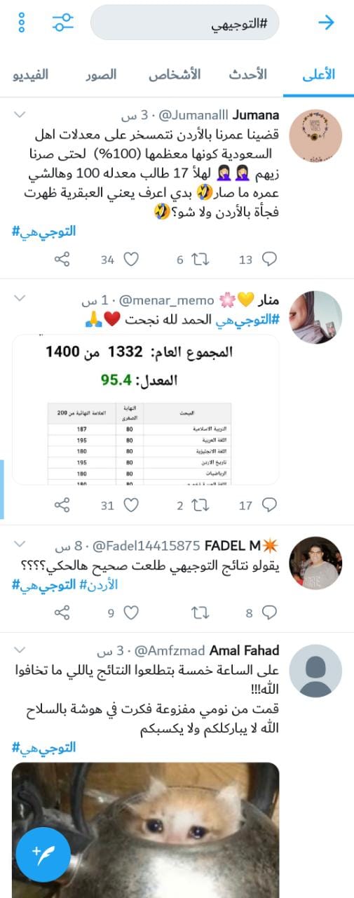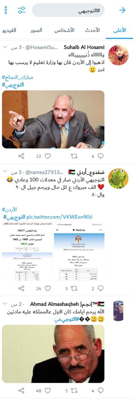 تفاعل رواد مواقع التواصل الاجتماعي، يوم السبت، مع إعلان نتائج امتحان الثانوية العامة (التوجيهي).