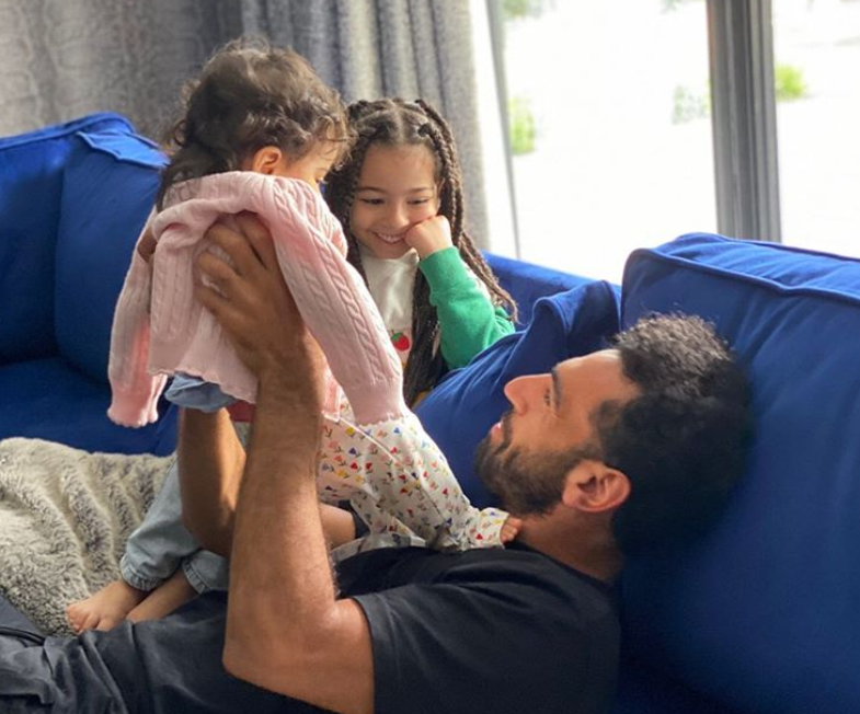 ويظهر صلاح في الصورة رفقة ابنتيه مكة وكيان، وأرفقها بعبارة: "الاختيار المفضل لدي".