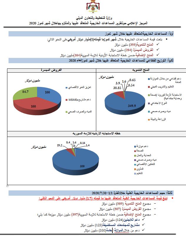 أحداث اليوم - بلغت قيمة المساعدات الخارجية المتعاقد عليها والملتزم بها خلال شهر تموز الماضي مليار دولار أميركي.