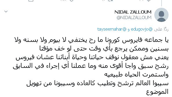 وأشار البعض الى ضرورة التعايش مع الفايروس كأي مرض أخر، لأن الفايروس لن ينتهي خلال فترة قصيرة من الزمن ووجب التعايش معه كي تستمر الحياة كما كانت عليه من قبل.