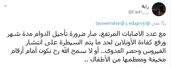 أحداث اليوم - فرح غيث - طالب مواطنون عبر مواقع التواصل الاجتماعي بتأجيل العام الدراسي والذي من المقرر ان يبدأ يوم غد الثلاثاء.