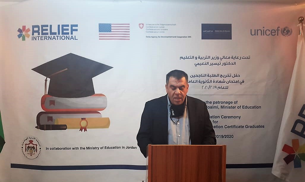 ورعى الحفل الافتراضي، أمين عام وزارة التربية والتعليم للشؤون التعليمية والفنية الدكتور نواف العجارمة نائبا عن الوزير تيسير النعيمي. حيث شمل 279 ناجحاً وناجحة من مخيمي الزعتري والأزرق والمجتمعات المضيفة في المفرق وإربد وعمّان والزرقاء.
