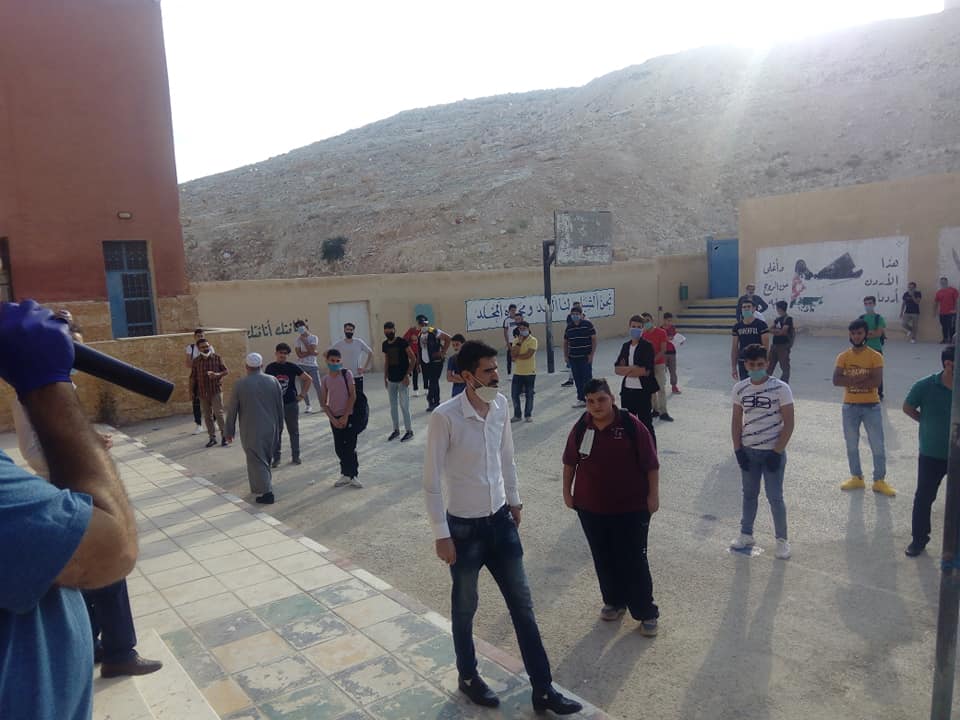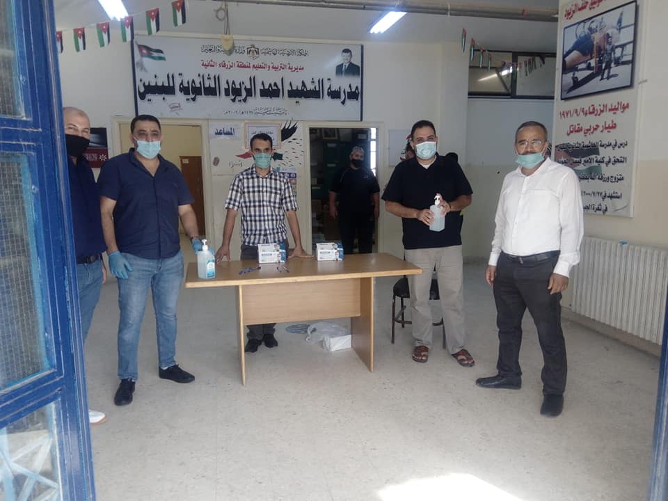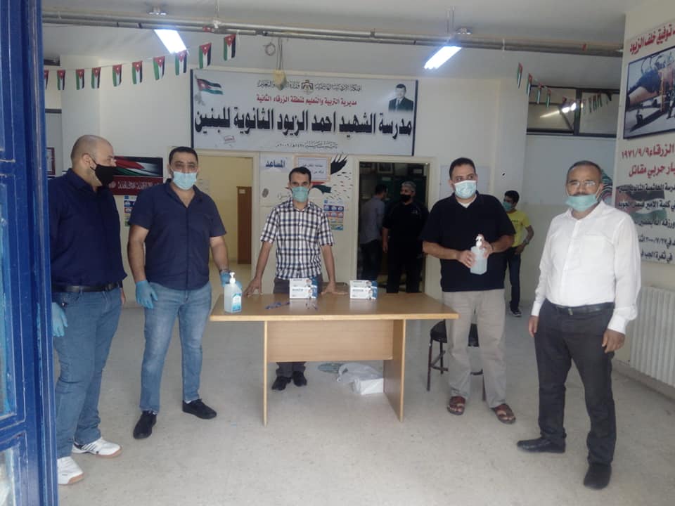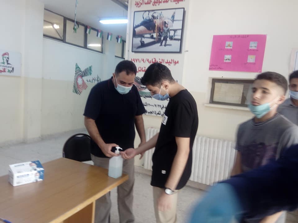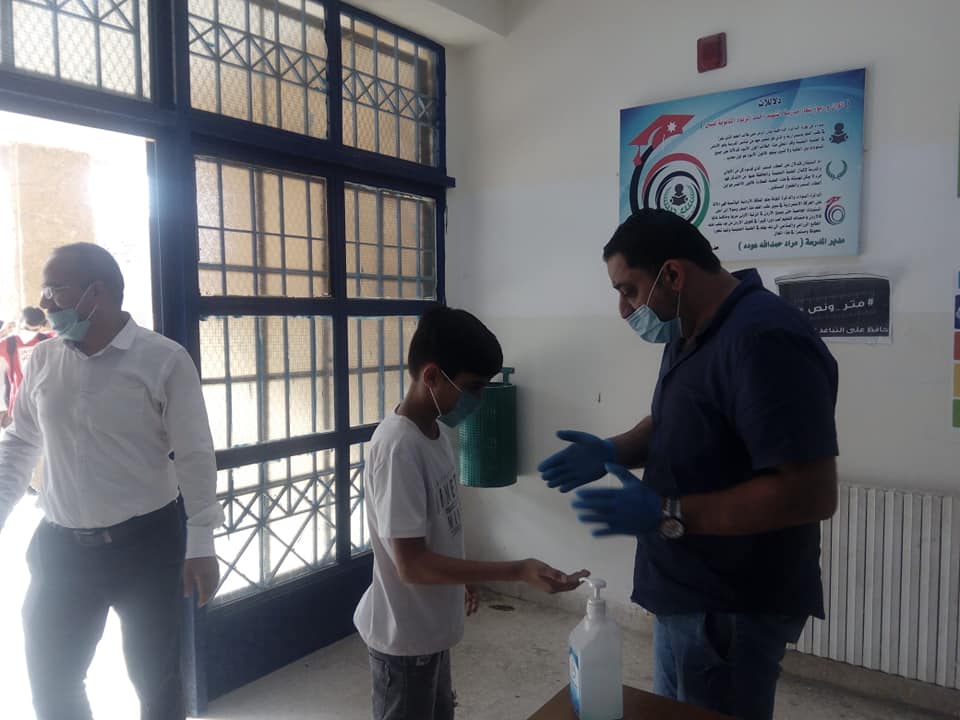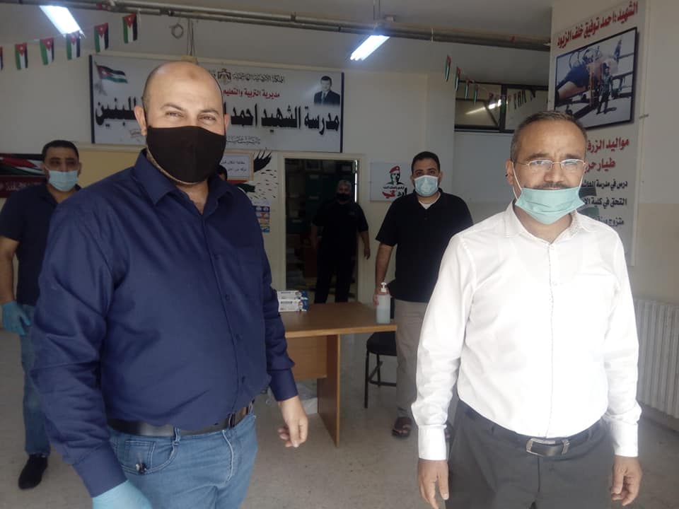 أحداث اليوم - استقبل معلمو مدرسة الشهيد أحمد الزيود في هاشمية الزرقاء، الطلبة، صباح اليوم الثلاثاء بالكمامات والكحول الطبي، استعدادا لبدء الدراسة.