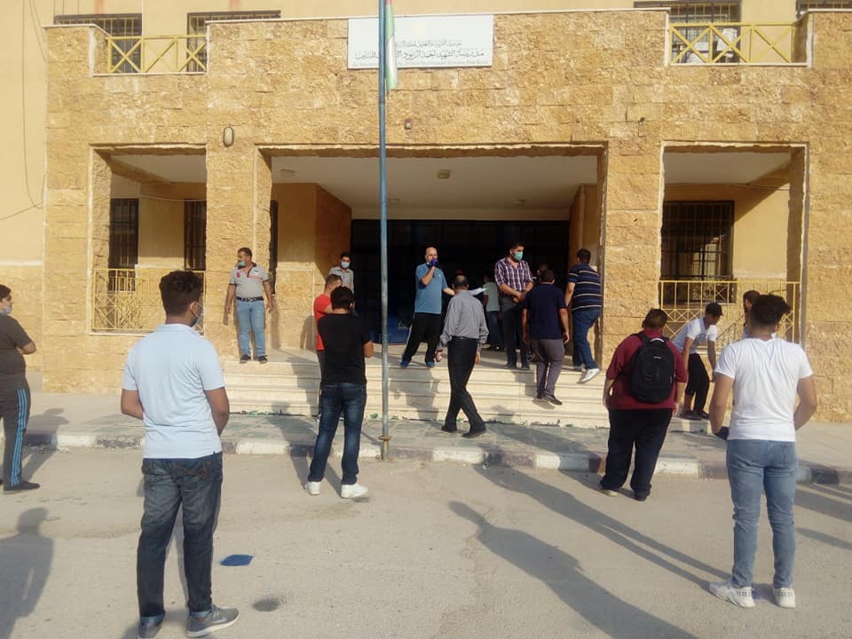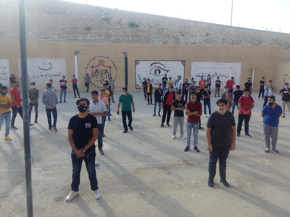 واقتصر استقبال اليوم الدراسي الأول في مدرسة الشهيد الزيود، على طابور صباحي ضمن إجراءات التباعد لأكثر من متر بين كل طالب وآخر ولشعبة واحدة فقط.