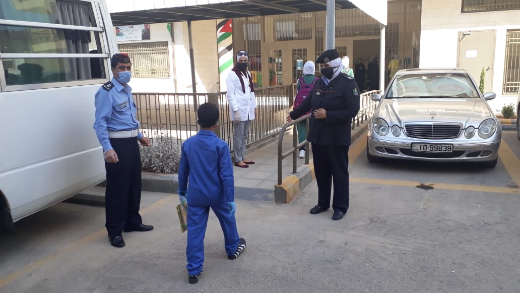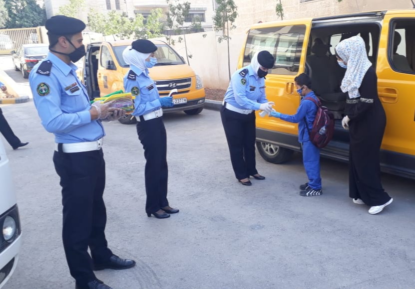 بهدف توعية الطلبة بقواعد المرور والعبور والاستخدام الآمن والسليم للطريق من خلال نشرات توعوية وزعت عليهم بالاضافة الى رسم الجداريات المرورية التوعوية على جدران المدارس وذلك ضمن حملة " الطريق الامن " التي اطلقتها مديرية الامن العام للحد من الحوادث المرورية. وفي هذا العام وفي ظل جائحة كورونا ، ساندت مديرية الأمن العام جهود وزارة التربية والتعليم في التصدي لمنع انتشار الجائحة من خلال رفع مستوى الوعي الصحي عند الطلبة وتوزيع جزء من مستلزمات السلامة العامة كالكمامات والقفازات وحثهم على الالتزام بقواعد السلامة العامة والتباعد الجسدي.