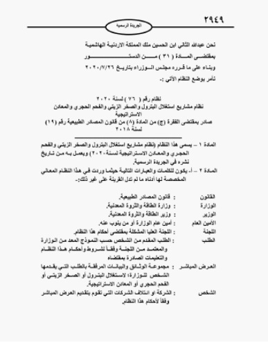 أحداث اليوم - صدر في الجريدة الرسمية الأربعاء نظام رقم 76 لسنة 2020 (نظام مشاريع استغلال البترول والصخر الزيتي والفحم الحجري والمعادن الاستراتيجية).وتاليا نص النظام: