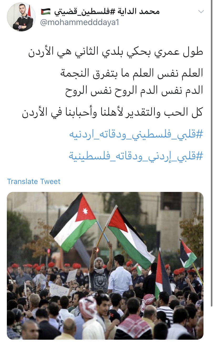 وعبرّ الناشطين من خلاله عن الرابطة القوية التي تجمع بين الشعب الأردني والفلسطيني، مؤكدين عدم التفرقة بين الشعبين.