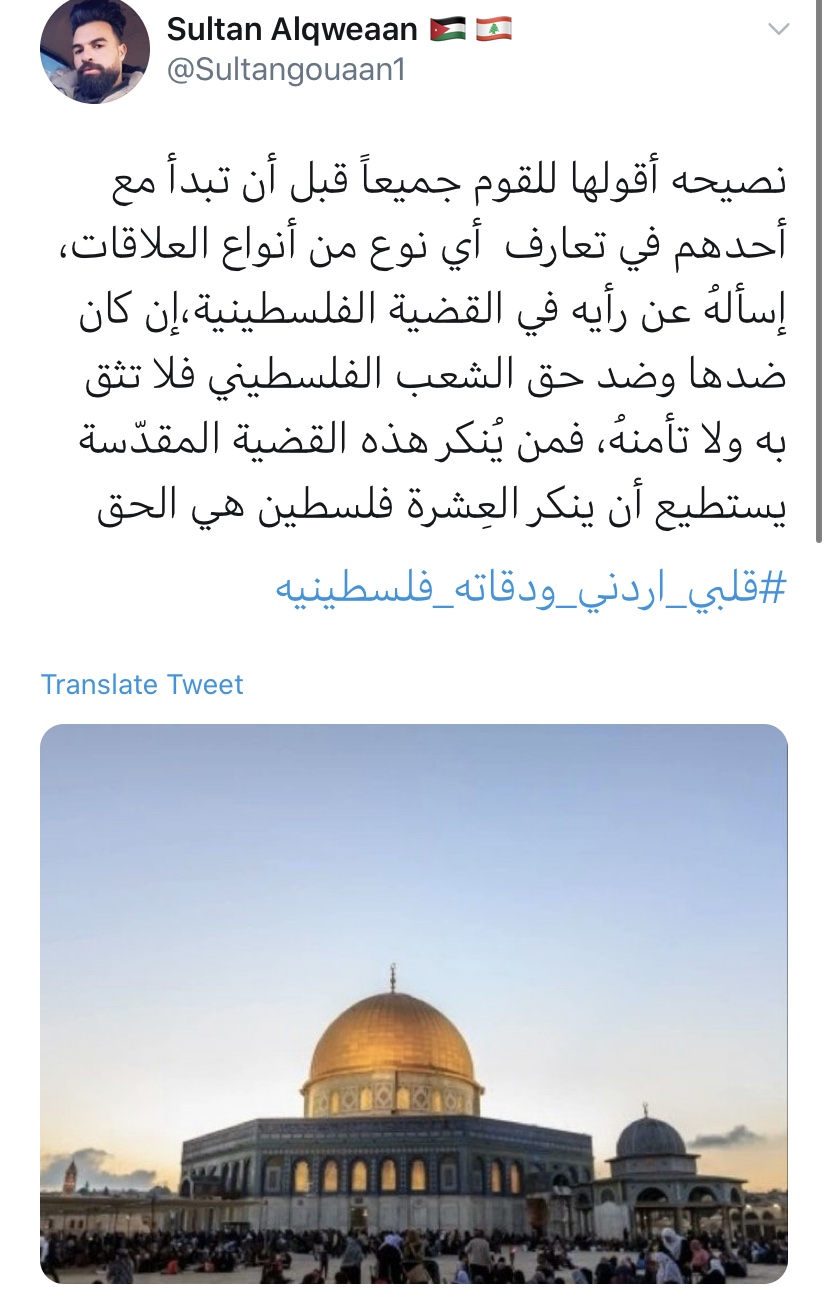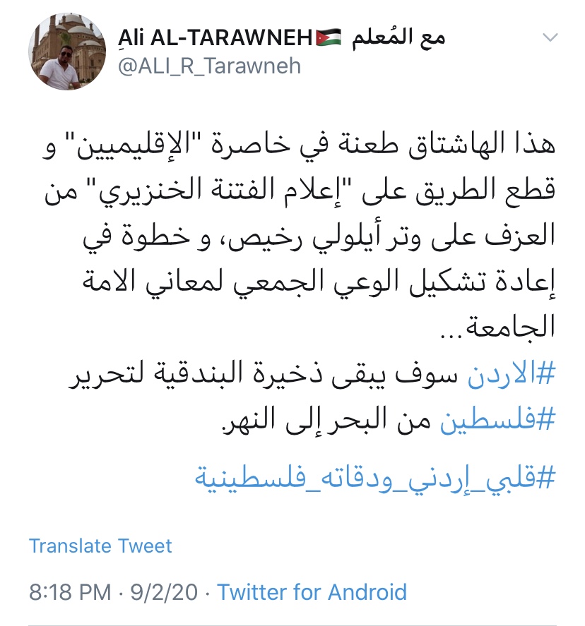 وأكد عدد كبير أن القضية الفلسطينية هي قضية جميع الأردنيين لحين تحريرها، وانها قضية كُل شخص شريف في العالم بعيداً عن التطبيع.