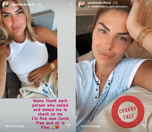 وفي رسالة عبر خاصية القصص القصيرة على إنستغرام، وجّهت ساندرا رزق رسالة لمتابعيها قالت فيها "أشكر كل ما اتصل بي وراسلني للاطمئنان عليّ. أنا جيّدة الآن وشفيت من كورونا".