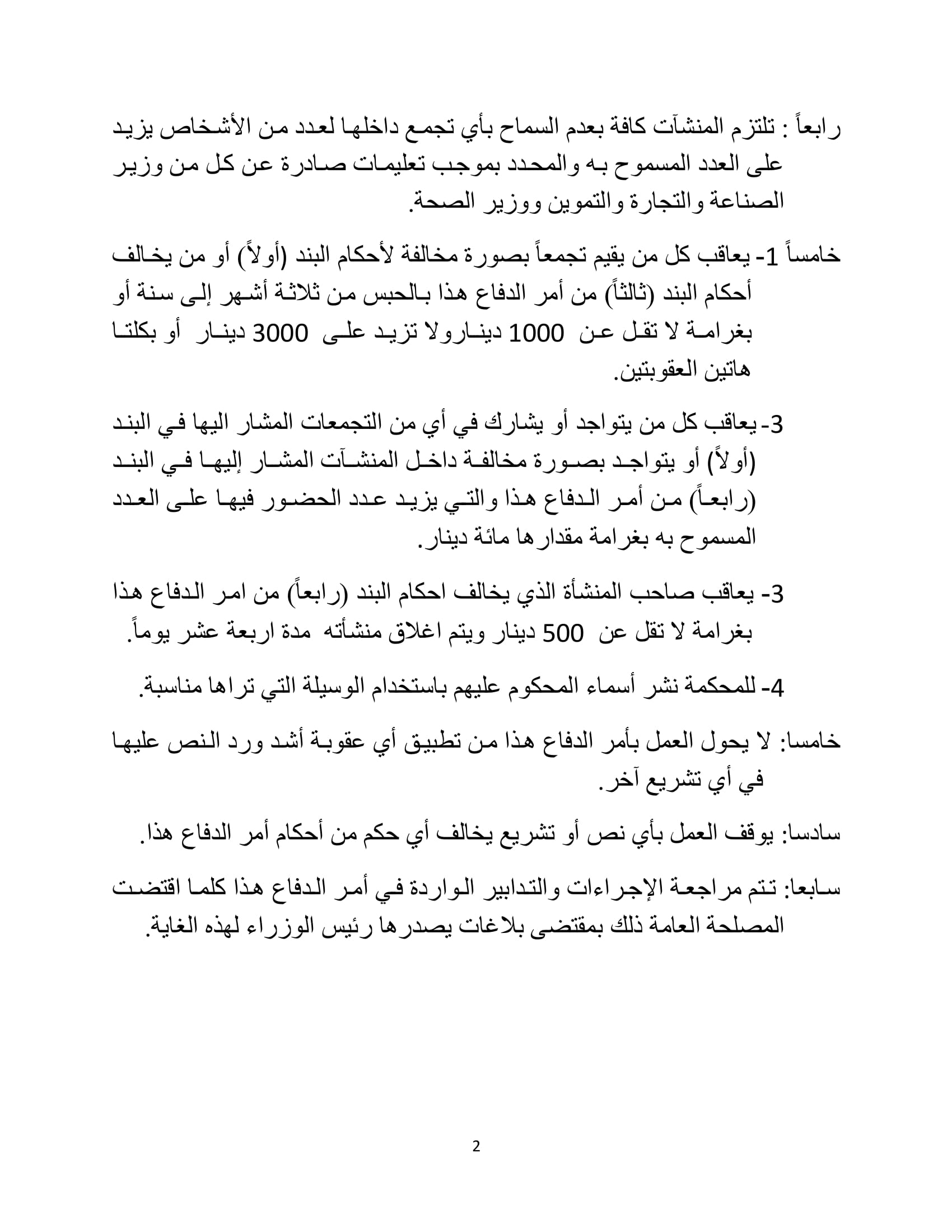 أحداث اليوم - أعلنت رئاسة الوزراء، الخميس، أمر دفاع رقم (16) لسنة 2020 الصادر بالاستناد لأحكام قانون الدفاع رقم (13) لسنة 1992.وتاليا نصه: