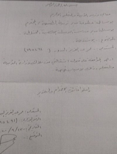 لذا وأنني اليوم ارفع بين ايديكم استقالتي، لانني ابن هذا الوطن وما قمت به اتجاه طلابي ما كان الا واجبي وساتابع طريقي سواء أبقيت موظفا ام لا فهذا ما يمليه علي ديني وحبي لوطني ولا حديث بعد ذلك...