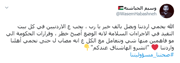 للقضاء على كورونا .. أردنيون يطلقون وسم صحتنا مسؤوليتنا