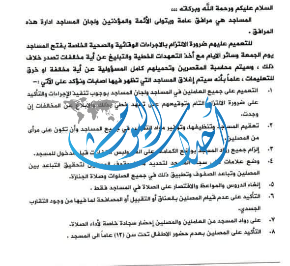أحداث اليوم تنفرد بنشر تعليمات فتح المساجد