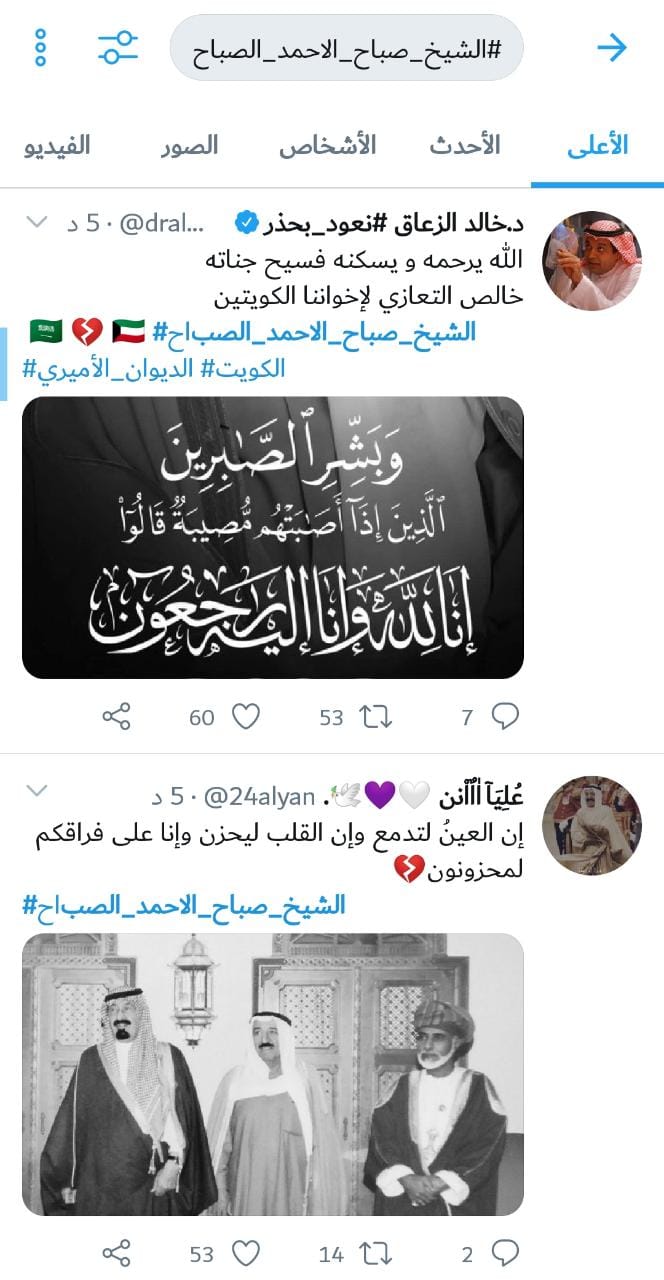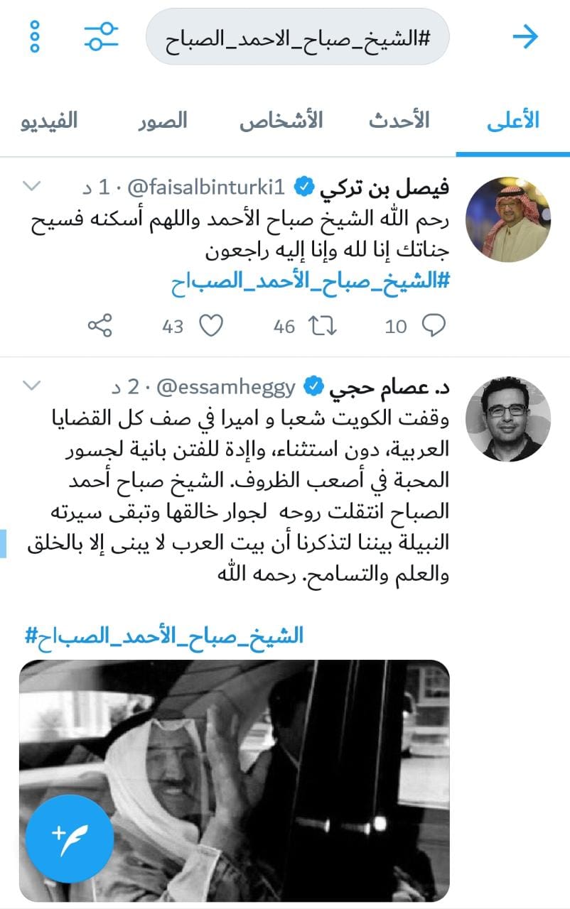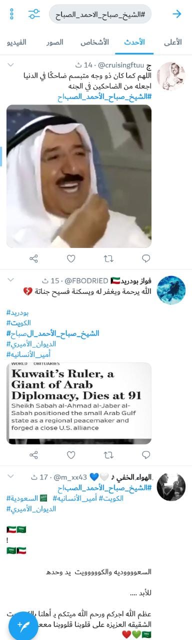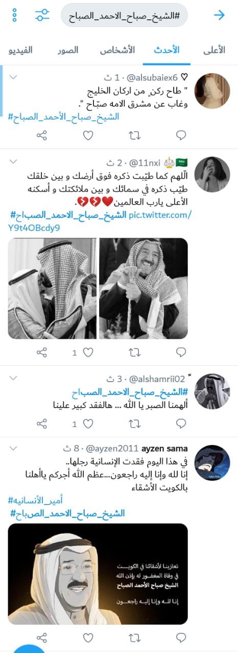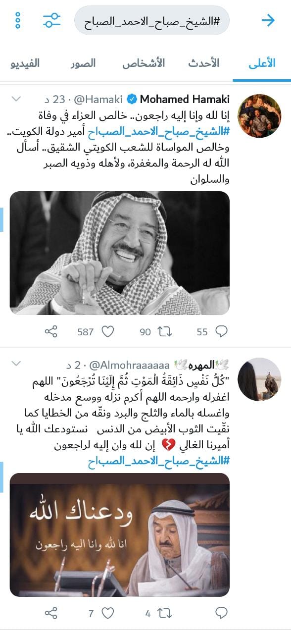 رصد - تفاعل رواد مواقع التواصل الاجتماعي مع وفاة أمير الكويت الشيخ صباح الأحمد الجابر الصباح اليوم الثلاثاء عن عمر 91 عاما.