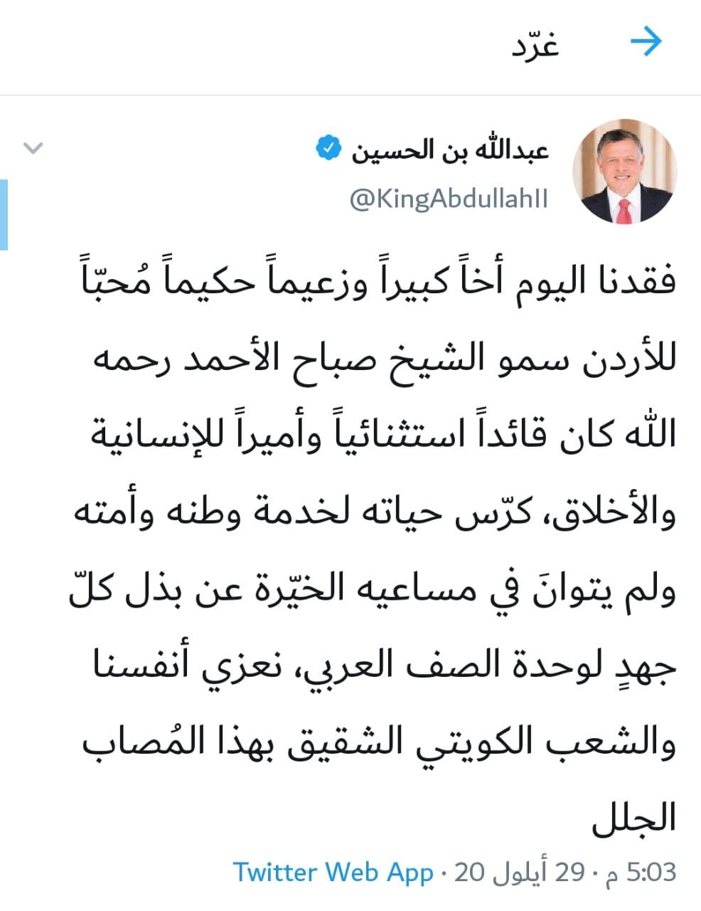 وتصدر وسم #الشيخ_صباح_الأحمد_الصباح ترند "تويتر" في الأردن وعدد من الدول العربية.