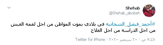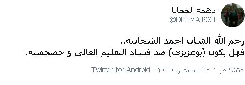 وعبّر الناشطون على مواقع التواصل بكلمات مؤثرة عن حزنهم واستياءهم عقب وفاة الطالب الشخانبة، مؤكدين على أن حقوق الطلبة يجب أن تصان خاصة في التعليم الحق الذي ضمنته كل قوانين العالم بعيداً عن الجانب المادي.