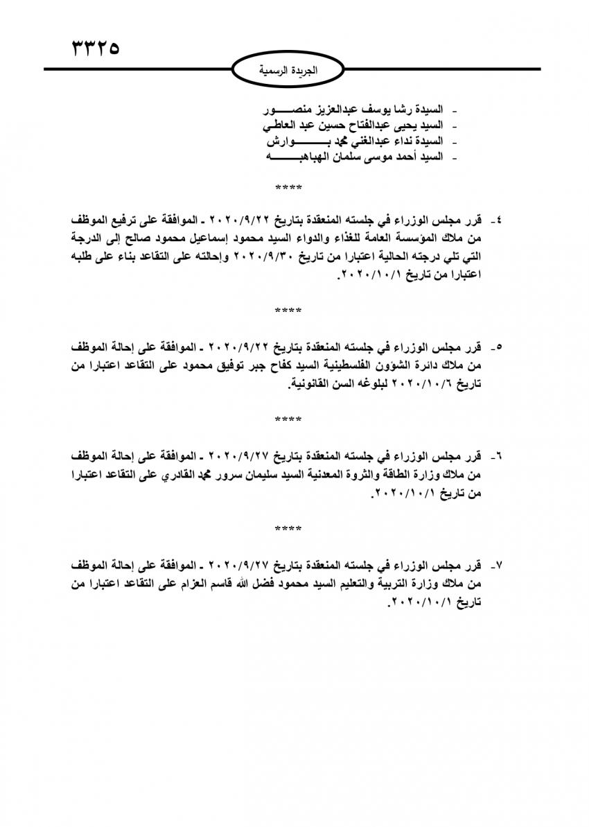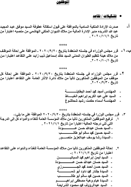 أحداث اليوم - صدر عدد في الجريدة الرسمية اليوم الخميس قرارات مجلس الوزراء باحالة عدد من موظفي الدولة الى التقاعد.وفي ما يلي الأسماء الواردة في الجريدة: