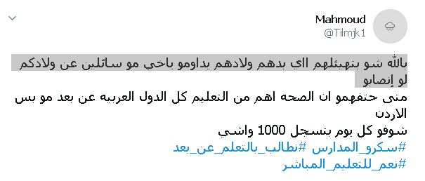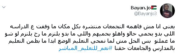 وتصدر وسم "#نعم_للتعليم_المباشر، قائمة الأعلى تداولا في الأردن على موقع التواصل الإجتماعي تويتر.