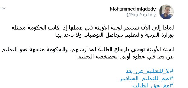 نعم للتعليم المباشر يتصدّر مواقع التواصل