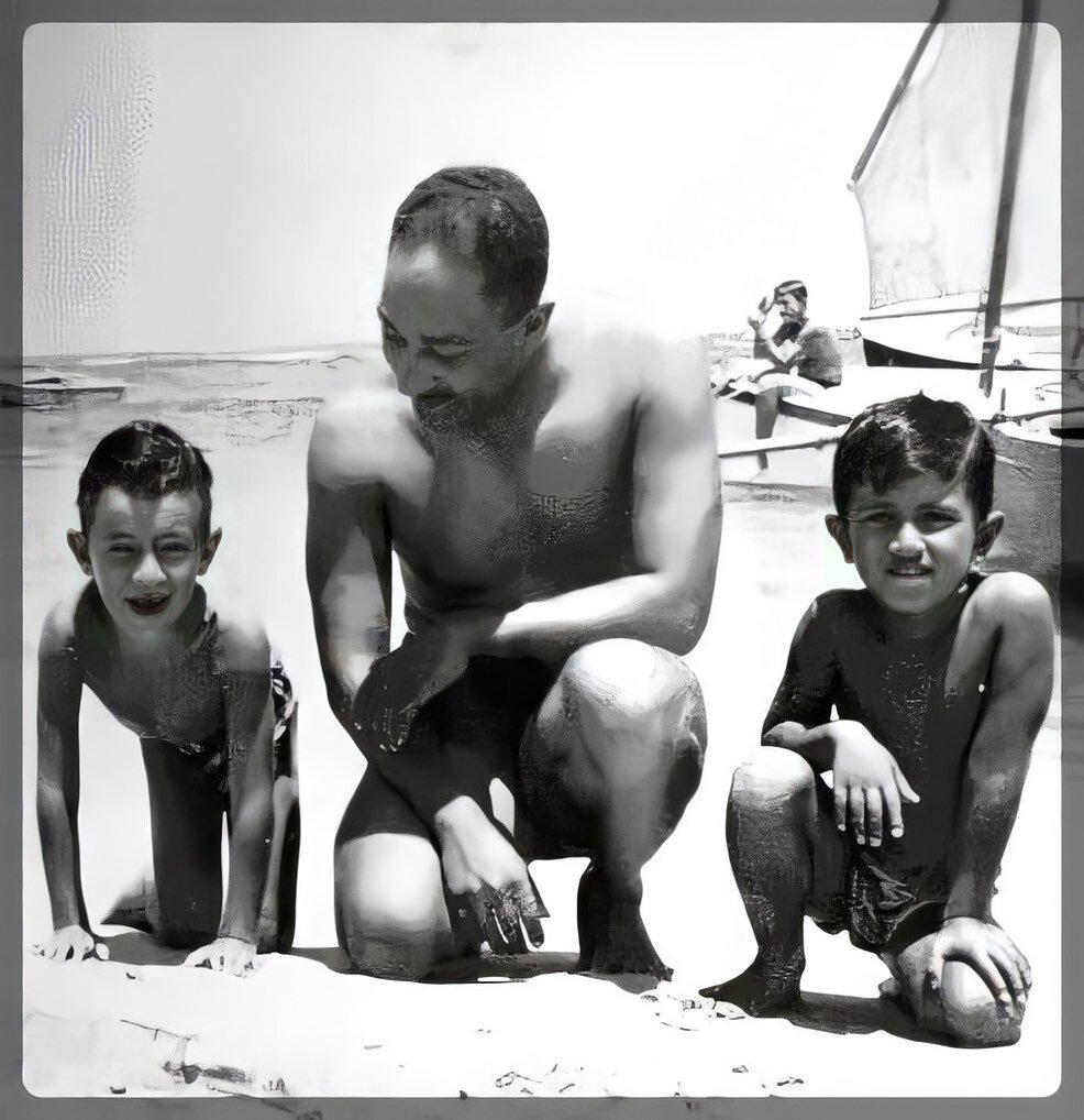 ويظهر في الصورة، التي نشرها حساب "إنستغرام" المهتم بأخبار وقصص الأديب الراحل إحسان عبد القدوس، الرئيس الراحل وهو يلعب في الرمال مع نجلي عبد القدوس.