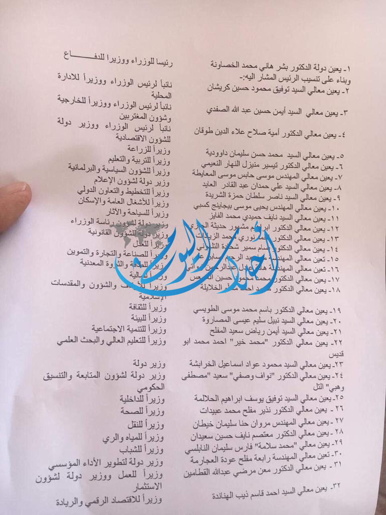 تؤدي حكومة الدكتور بشر الخصاونة عصر اليوم الاثنين اليمين الدستورية أمام الملك عبدالله الثاني.