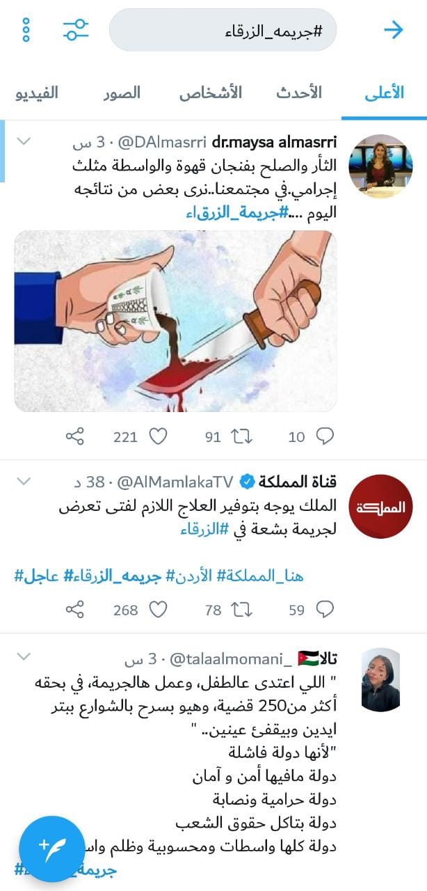 أحمد بني هاني - أثارت جريمة الزرقاء التي وقعت، الثلاثاء، غضب واستياء رواد مواقع التواصل الاجتماعي نظرا لبشاعة الجريمة والاعتداء التي حدثت بداعي الثأر على خلفية جريمة قتل سابقة.