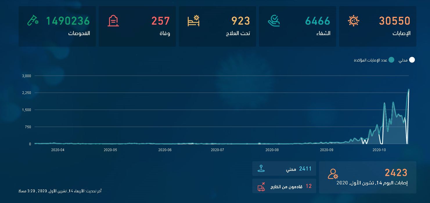 وبيّنت ارقام وزارة الصحة أن عدد الوفيات قد ارتفع بشكل كبير جراء الفيروس ليصل إلى 257 وفاة، بعد أن سُجل أمس الأربعاء 32 حالة وفاة.