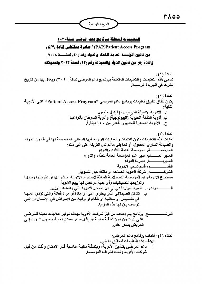 أحداث اليوم - صدر في عدد الجريدة الرسمية اليوم الخميس، التعليمات المتعلقة ببرنامج دعم المرضى لسنة 2020.