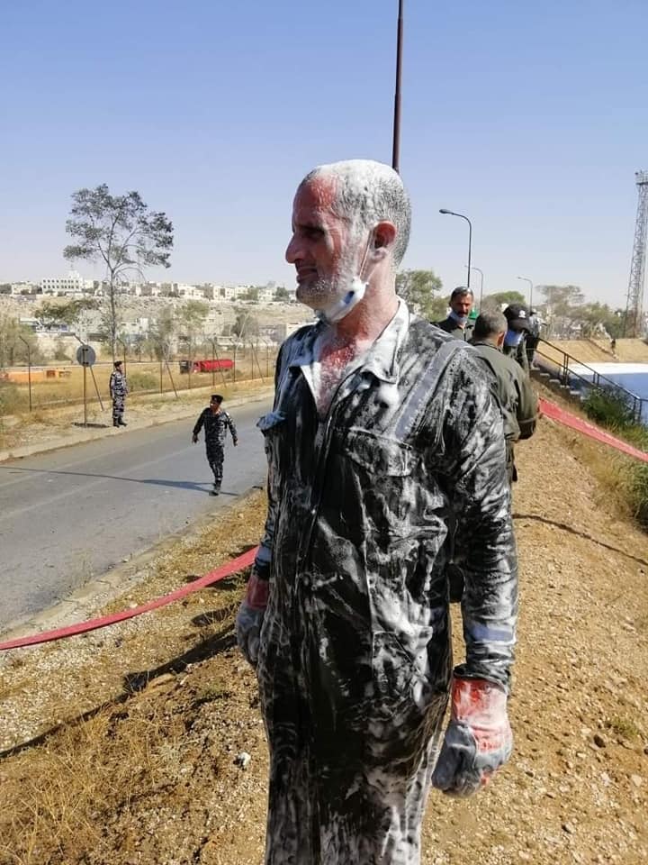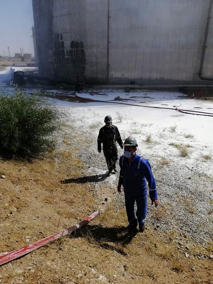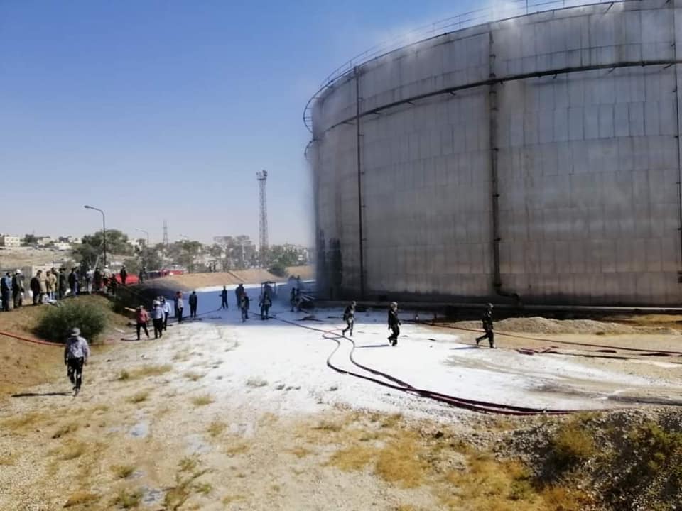 نشب حريق بسيط ضمن منطقة محدودة جدا اليوم الثلاثاء أثناء عملية تفريغ أحد خزانات زيت الوقود في موقع المصفاة بالزرقاء.