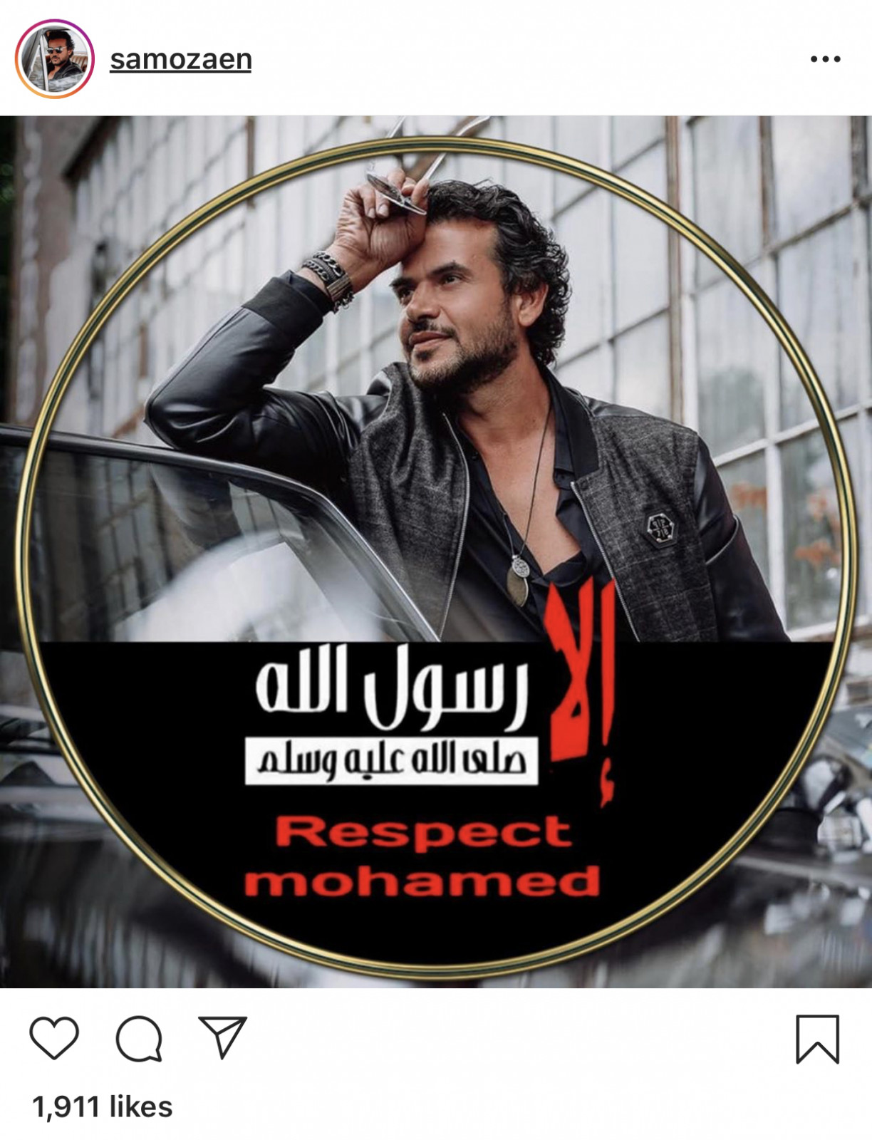 ونشر المطرب سامو زين، من خلال حسابه الشخصي على موقع التواصل الاجتماعي "إنستجرام" صورة مكتوب عليها "إلا رسول الله صلى الله عليه وسلم".