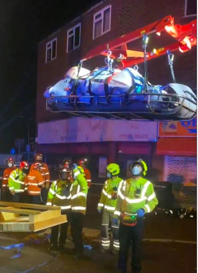 واضطر رجال الإنقاذ إلى إزالة نافذة غرفة نومه حتى يتمكنوا من إخراجه.