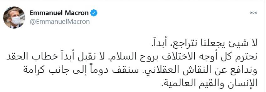 ماكرون بالعربية: لا شيء يجعلنا نتراجع