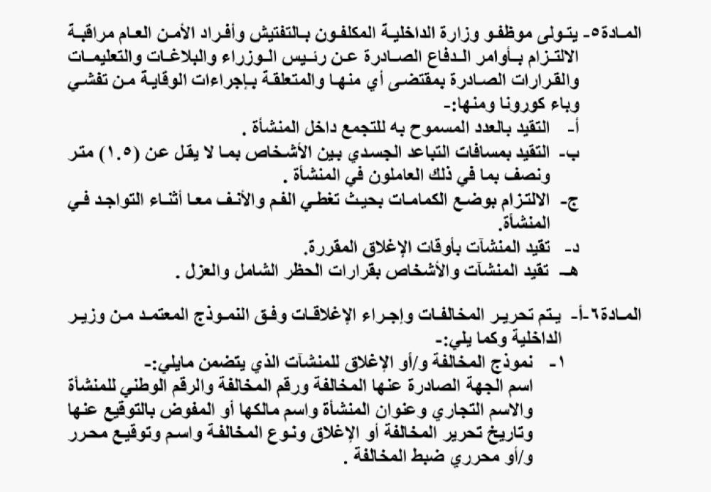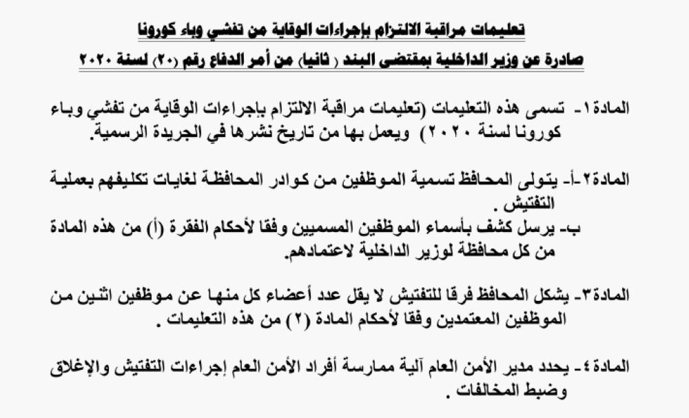 كما أصدر وزير الداخلية، تعليمات مراقبة الالتزام بإجراءات الوقاية من تفشي وباء كورونا.