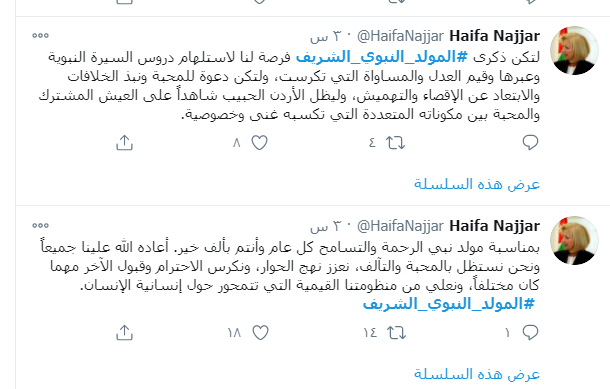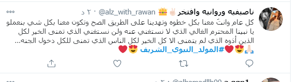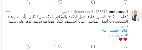 ودعا ناشطون في تغريداتهم للتحلي بأخلاق رسول الله المليئة بالتسامح والكف ما حرّم الله، والمستهزئين، في الوقت ذاته الذي دافعوا عنه وطالبوا فرنسا بالاعتذار الرسمي للمسلمين عن الإساءة والتحريض الرسمي على نشر الصور المسيئلة لخاتم الأنبياء.