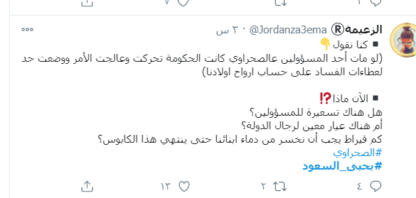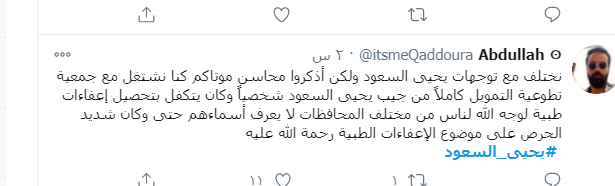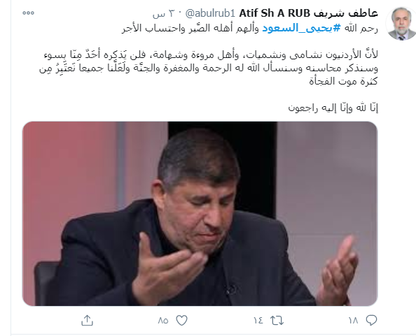 وأكدوا في تغريدات متعددة أنّ الاتفاق على انتقاده وعدم موافقته الرأي لا يعني الشماتة في موته والفرح لذلك المصاب، خاصة وأنّه توفي في الطريق الصحراوي الذي أزهق أرواح العشرات من الأردنيين خلال السنوات الماضية.
