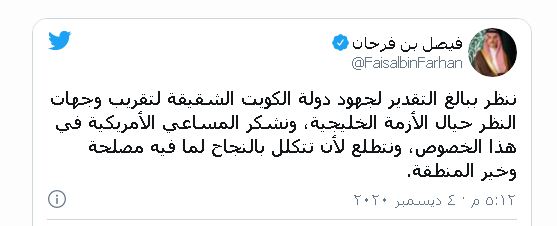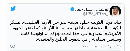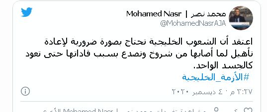 وأطلاق رواد مواقع التواصل الاجتماعي في عدد من الدول العربية وسم #المصالحة_الخليجية الذي تصدر قائمة أكثر الوسوم انتشاراً في البحرين ومصر والكويت والأردن وعُمان وقطر والإمارات العربية المتحدة.