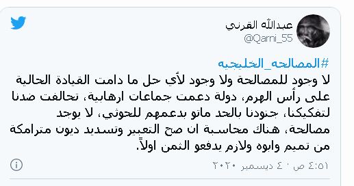 منهم من وجد أهمية كبيرة وضرورة للمصالحة خاصة في ظل هذه الأوضاع الصعبة التي تعيشها المنطقة العربي، موضحين أن الوحدة العربية بشكل عام والخليجية خاصة لها دور كبير في مواجهة التحديات.