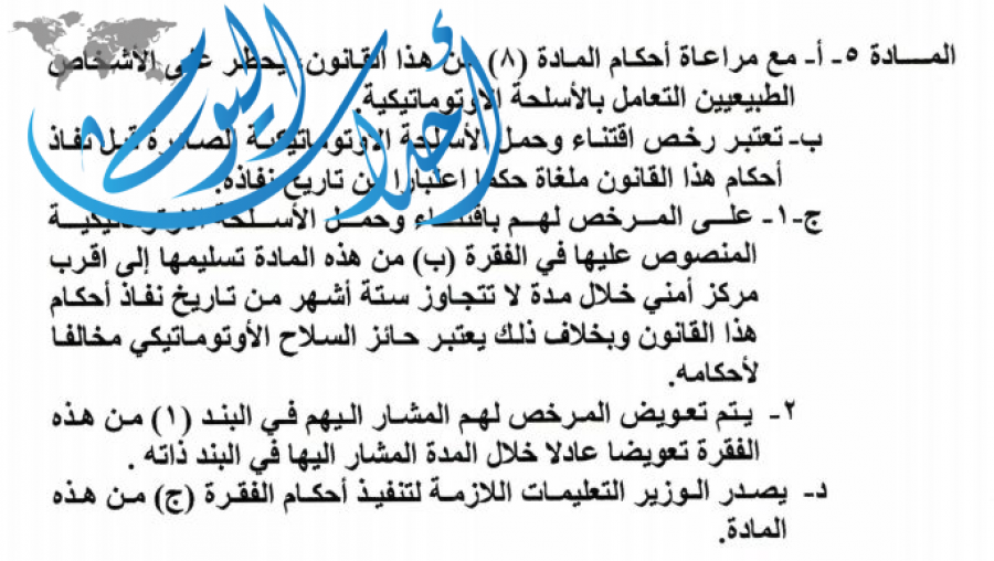مصدر حكومي مُطلع قال إن قانون الأسلحة والذخائر ما زال حتى الآن بجبعة مجلس النواب دون أي تغيير.