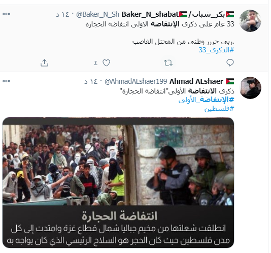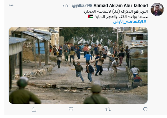 أحداث اليوم - ياسر شطناوي - تفاعل نشطاء ورواد مواقع التواصل الإجتماعي مع ذكرى الإنتفاضة الأولى" انتفاضة الحجارة" التي تصاف اليوم بعد مرور 33 عاماً عليها.