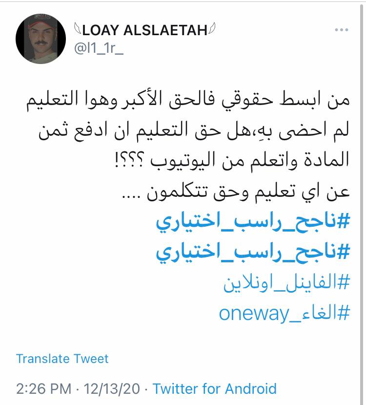 وتفاعلوا الطلبة من كافة أنحاء المملكة على هاشتاغ #ناجح_راسب قائلين أنه ما دام التعليم إلكترونياً يجب أن تكون الإمتحانات إلكترونياً ايضاً.