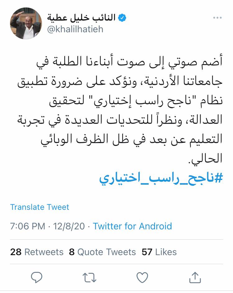 براءة شلالدة - طالب عدد من طلبة الجامعات الأردنية عبر مواقع التواصل الإجتماعي بأن تكون الإمتحانات النهائية إلكترونياً و ضمن نظام ناجح راسب.