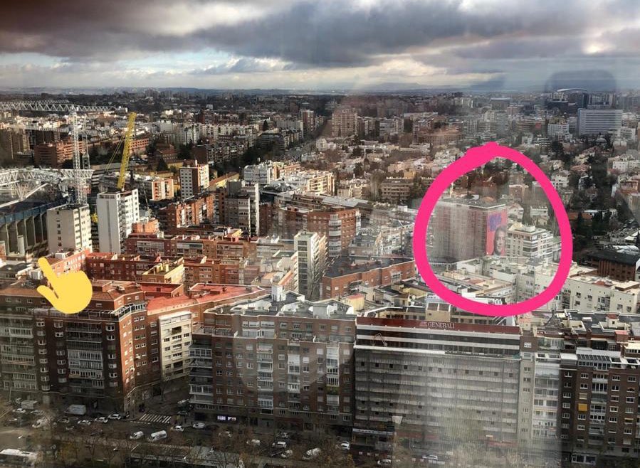 وظهر المُلصق الذي يصل ارتفاعه إلى 50 مترا وعرضه 20 مترا، مكتوب عليه: "متحمس لرؤيتكم جميعًا مرة أخرى".