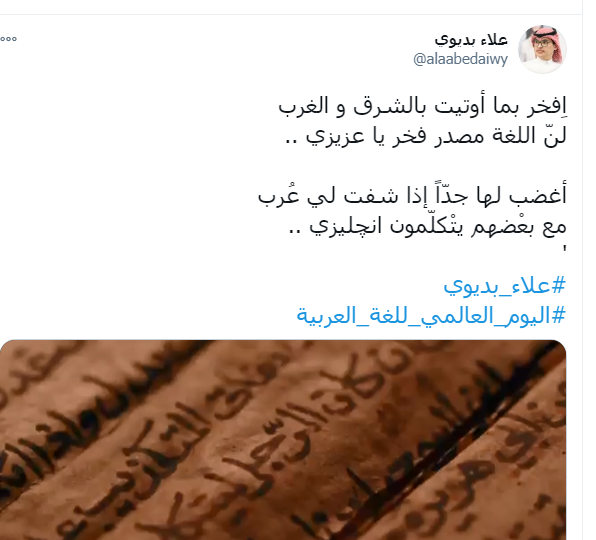 أحداث اليوم - تفاعل نشطاء مواقع التواصل الإجتماعي مع مناسبة اليوم العالمي للغة العربية التي تصادف اليوم الجمعة.