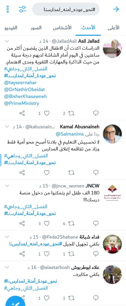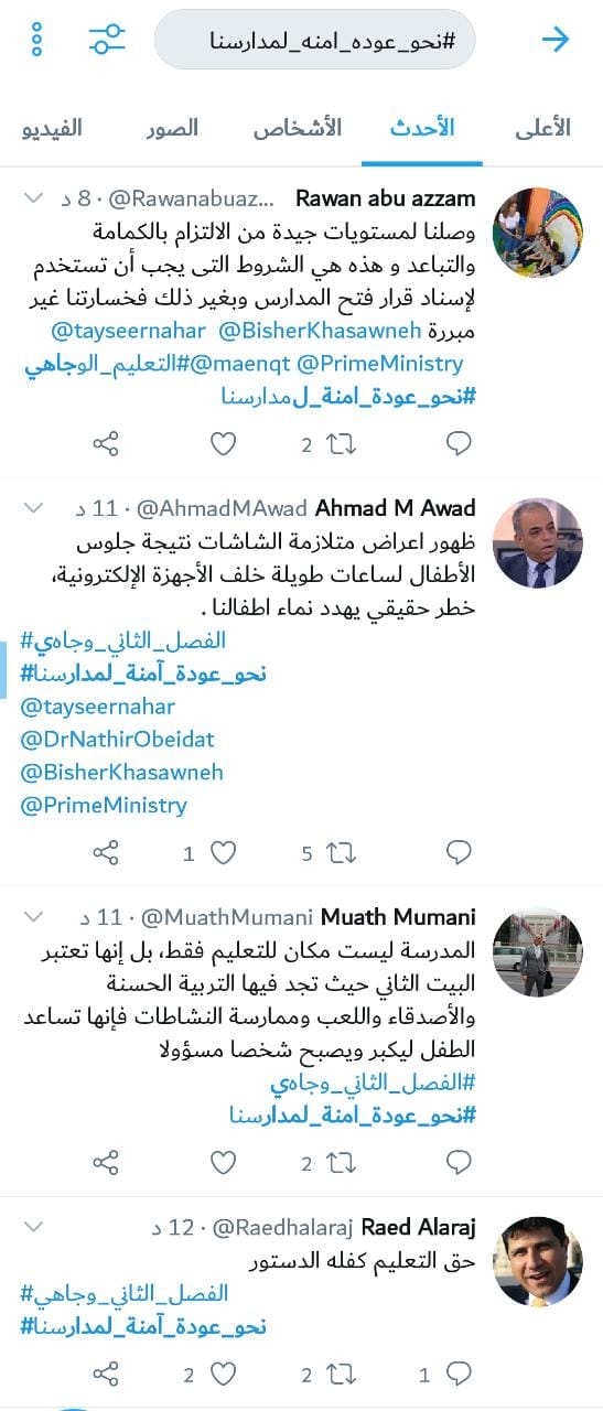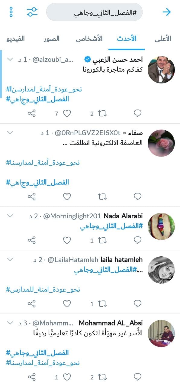 وتصدر وسم #نحو_عودة_آمنة_لمدارسنا و #الفصل_الثاني_وجاهي قائمة الترند في الأردن.