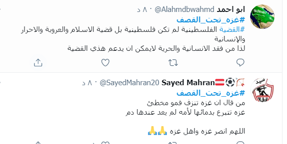 ودشن النشطاء وسم #غزة_تحت_القصف، حتى ـصبح على قائمة "الترند في الهاشتاقات" المتداولة، حيث عبروا من خلاله عن رفضهم واستنكارهم لهذا العدوان الغاشم البربري.