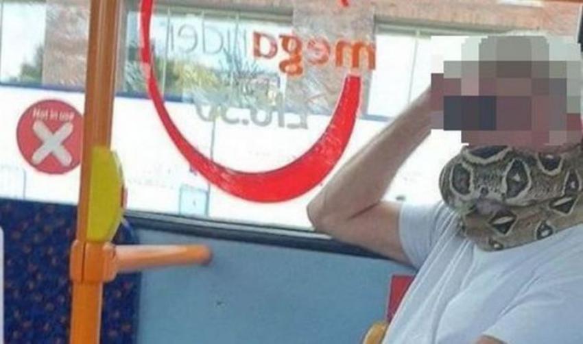 استقل شخص حافلة في مدينة مانشستر البريطانية في سبتمبر وهو يلف حول عنقه ووجهه ثعبانا. وأكد أحد الشهود أن هذا المشهد لم يزعج أحدا حتى عندما بدأت الأفعى استكشاف الحافلة. وأوضحت السلطات البريطانية أن إمكان الاستعانة بكمامات بديلة "لا يشمل الاستعانة بجلد الأفاعي، خصوصا إذا ما كان مثبتا على الأفعى".