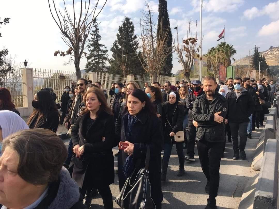 وظهر التأثر الكبير على الفنانين السوريين الذين شاركوا في مراسم الجنازة، بينهم باسم ياخور، سيف الدين السبيعي، عابد فهد، ميلاد يوسف، غسان مسعود، وأيمن رضا والليث حجو وسلاف فواخرجي ووائل رمضان وسلافة معمار وأنطوانيت نجيب والمثنى صبح وسليم صبري وميلاد يوسف وسحر فوزي وفادي صبيح وخالد القيش وتامر إسحق ومحمد قنوع وجمال العلي وروعة السعدي أمل عرفة وشكران مرتجى وعلاء قاسم وجلال شموط وكثر آخرون، وتيم حسن الذين بدا عليهم الحزن الشديد، كما تأثرت بشدة الممثلة السورية منى واصف.