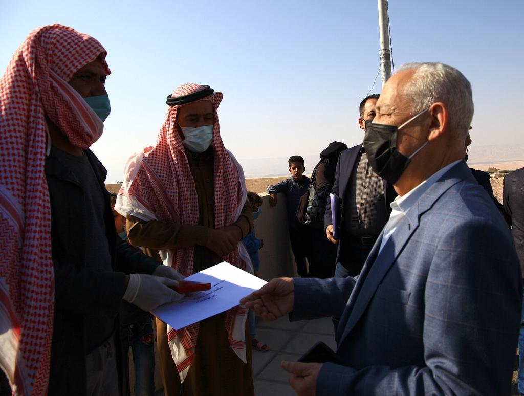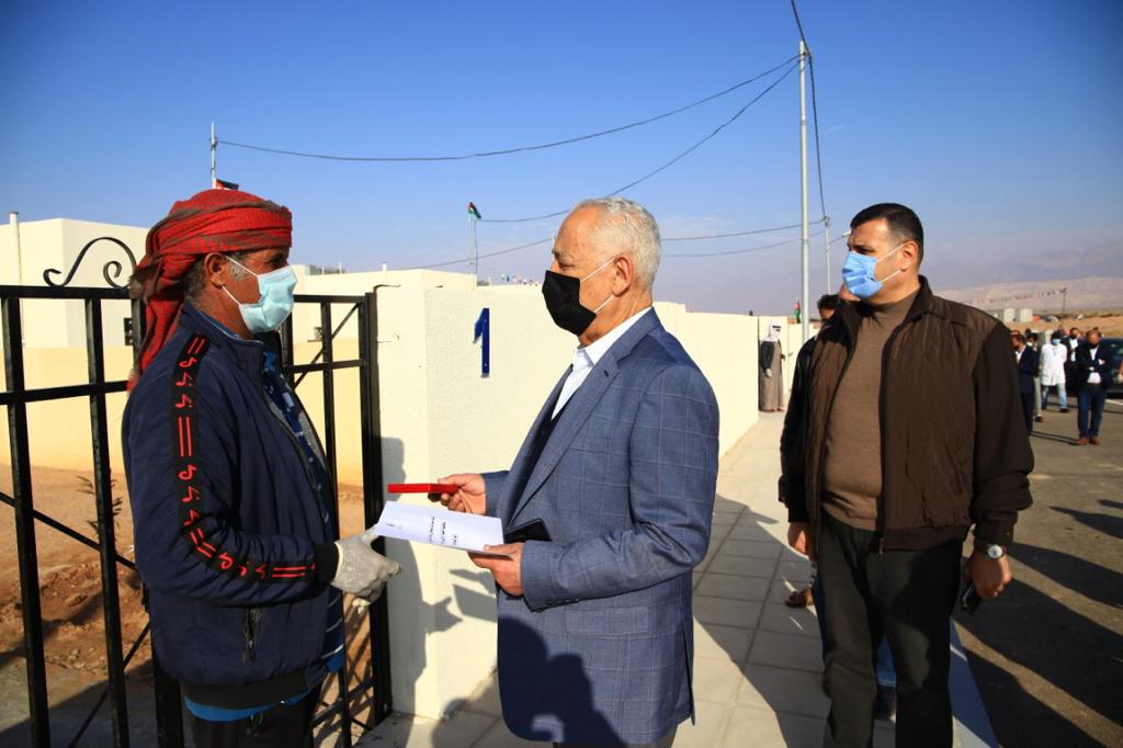 وسلّم رئيس الديوان الملكي الهاشمي، رئيس لجنة مُتابعة تنفيذ مبادرات الملك، يوسف حسن العيسوي، مفاتيح المساكن الجديدة للأُسر المستفيدة في مناطق؛ رحمة والريشة وبئر مذكور وقريقرة وفينان بوادي عربة، بحضور وزيري الأشغال العامة والإسكان المهندس يحيى الكسبي، والتنميّة الاجتماعيّة أيمن المفلح، ومحافظ العقبة الذين تفقدوا المساكن الجديدة من حيث تأثيثها وتزويدها بمختلف المستلزمات والأجهزة الكهربائيّة اللازمة.